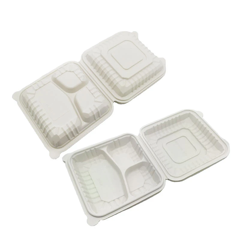 Custom Branded Eco-Friendly Sugarcane Clamshell Containers | Compostable Bagasse Takeout Boxes