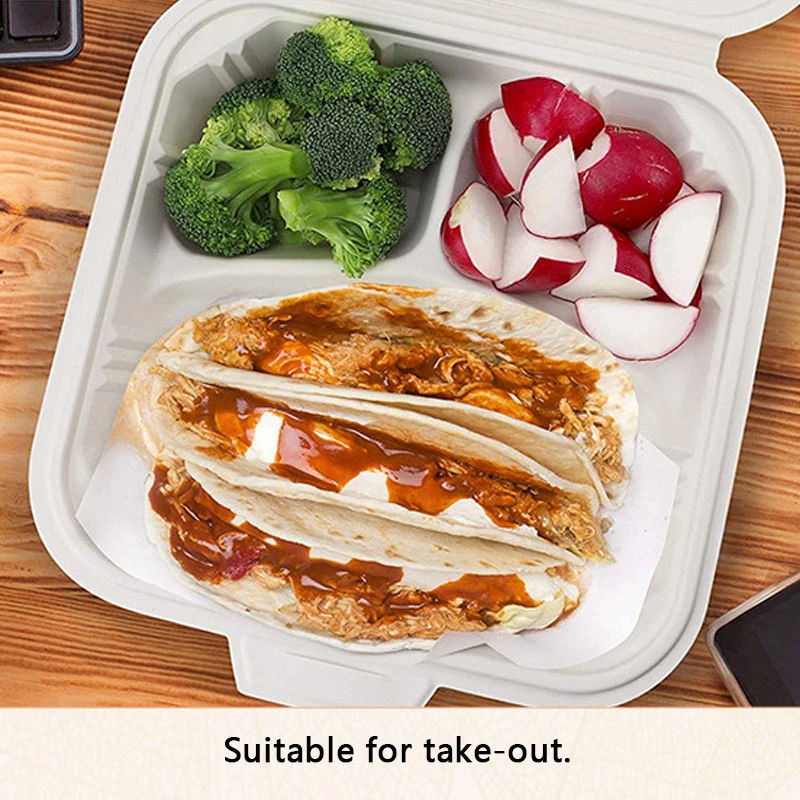 🌱 100% Eco-Friendly & Compostable: Made from renewable plant by-products, these containers biodegrade naturally within 90 days in commercial composting facilities, leaving zero toxic residue.