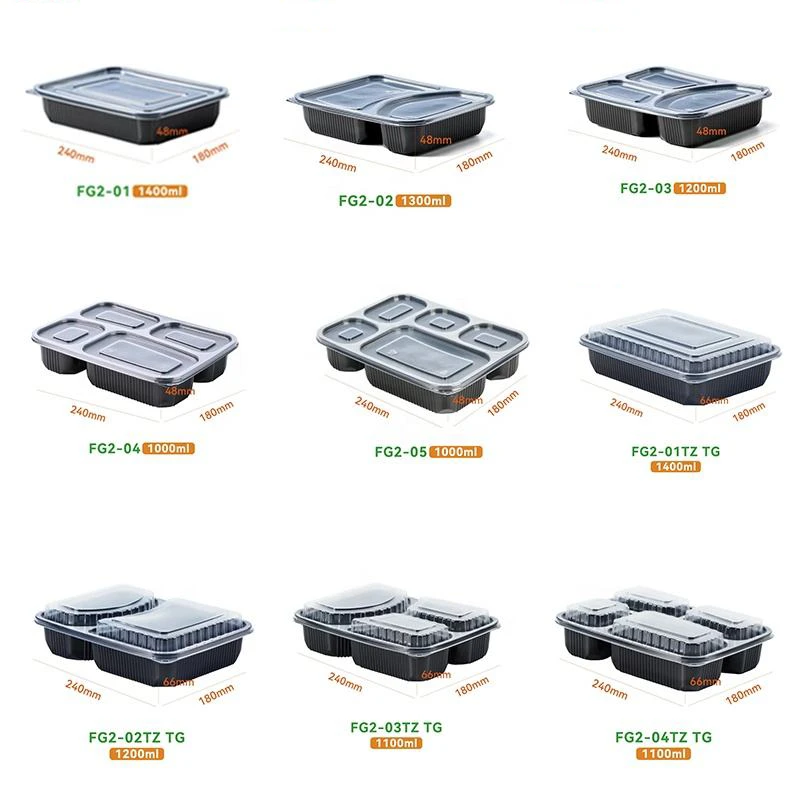 Custom Compartment Meal Prep Containers | Wholesale Disposable Bento Boxes with Lids | Microwavable Black Takeout Trays